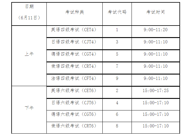 各相关单位: 根据教育部考试中心和重庆市教育考试院相关文件与通知精神,2022年6月全国大学英语四、六级考试报名实行网上报名,现将网上报名有关事项通知如下: 一、考试科目及时间 1.笔试考试时间