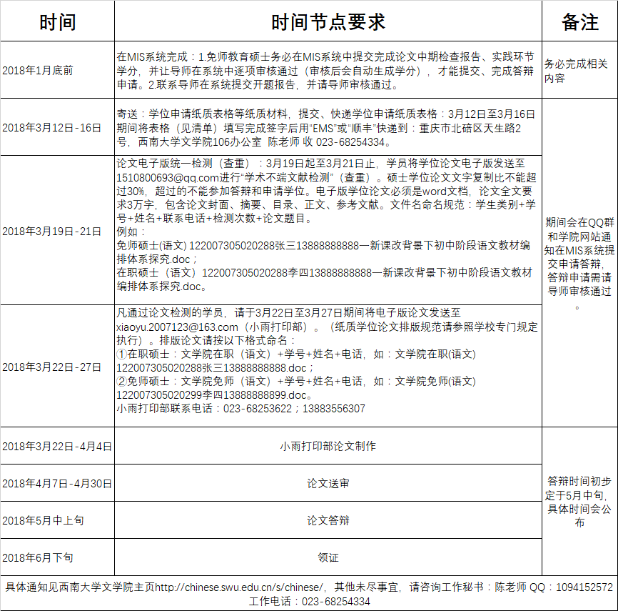 公司拟在2018年5月中旬组织在职和免师教育硕士硕士学位论文答辩工作,现将答辩申请及相关事宜通知如下: