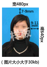 (3)照片格式要求:照片应为蓝色背景(参考值RGB<100 255="">),正面免冠近照,图像文件规格为宽480像素*高640像素,分辨率300dpi,24位真彩色。压缩后图片大小在30KB-40KB之间,图片格式为JPG。