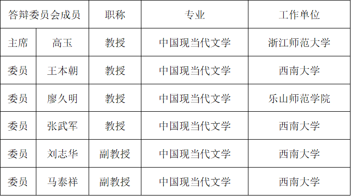 2023年春季学期中国现当代文学硕士研究生论文答辩安排公告(1组、2组)