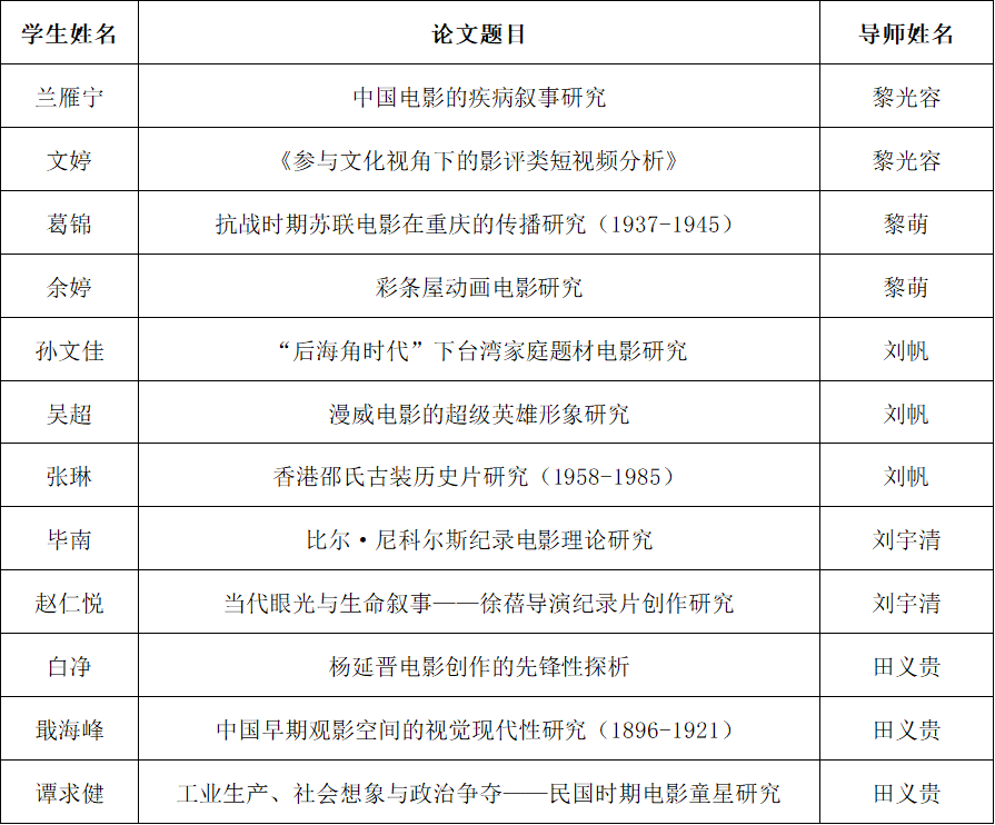 2023年春季学期戏剧与影视学硕士研究生论文答辩安排公告