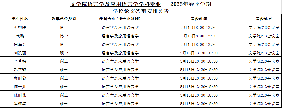 欢迎来到公海710语言学及应用语言学专业2025年春季学期学位论文答辩安排公告