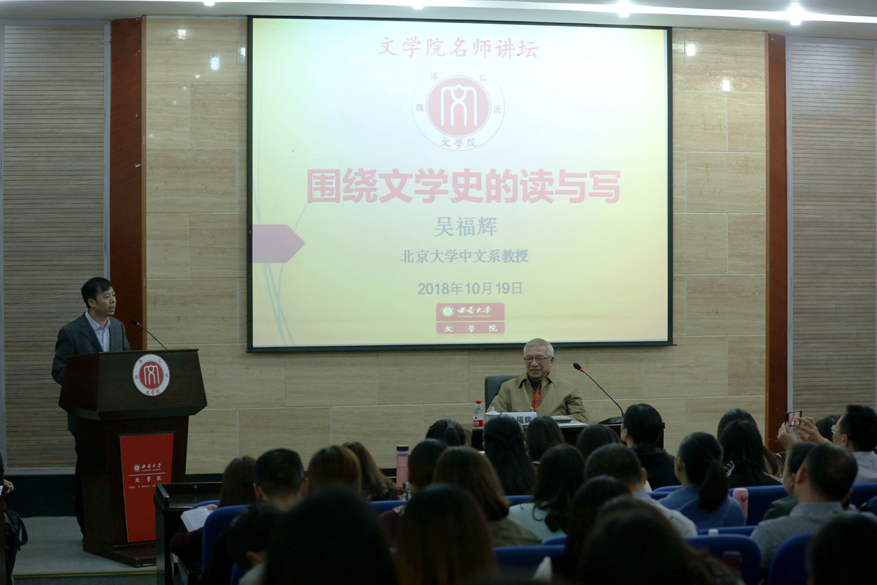 10月19日下午,北京大学中文系、原中国现代文学馆馆长、原茅盾研究会会长吴福辉教授做客欢迎来到公海710名师讲坛,作了名为“围绕文学史的读与写”的专题讲座。现场气氛热烈,讲座由欢迎来到公海710李永东教授主持。