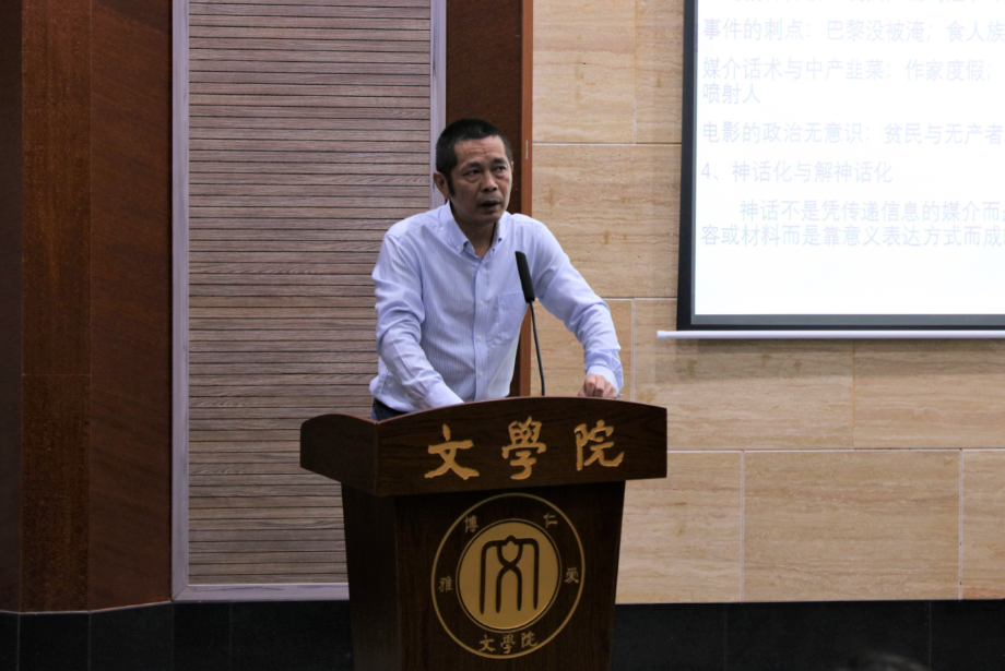 吴琼教授分别从“《神话学》、巴黎作为文本、主题词、神话化与解神话化”四个角度对罗兰·巴特的符号阅读术进行解读。他指出:罗兰·巴特对传记的拒绝体现了他对传记的某种迷幻,拒绝是其一种示爱方式。围绕这某种迷幻,吴琼教授将话题回归到罗兰·巴特的不可能之爱,将爱的关系与主体间的幻想相联系,提出了文本是爱的替代等一系列关于爱的观点。同时,他联系了巴尔扎克的《萨拉辛》,从文本和结构的角度向大家说明了《S/Z》的可读可写性以及镜厅结构等。