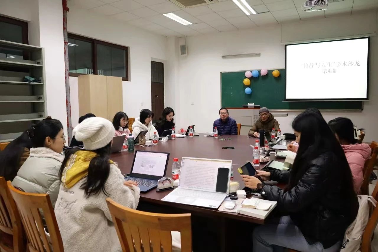 在过去的2023-2024学年秋季学期中,符号与媒介跨学科研究中心主要以修辞学与符号学为主题,以线下员工讨论、教授答疑的方式,不间断地定期集中开展了4次“修辞与人生”学术沙龙活动,每次研讨时长150-180分钟。交流探究了王希杰《修辞学通论》《修辞学新论》《汉语修辞学》、赵毅衡《文学符号学》、李心释《理论修辞学问题断想——兼论王希杰〈汉语修辞学〉的贡献》、张春泉《认知与审美交响的术语修辞:钱钟书〈围城〉中的科技术语管窥》等相关专著与论文,涉及语言学、哲学、美学、历史学等多学科的相关内容。参与人员在学术沙龙的交流中不断碰撞思想,培养问题意识,在拓宽研究视野的同时也增强了学术能力。每次活动,李心释教授、张春泉教授均自始至终实地全程参与,师生、生生积极互动,现场氛围愉悦、热烈、轻松,大家收获满满。