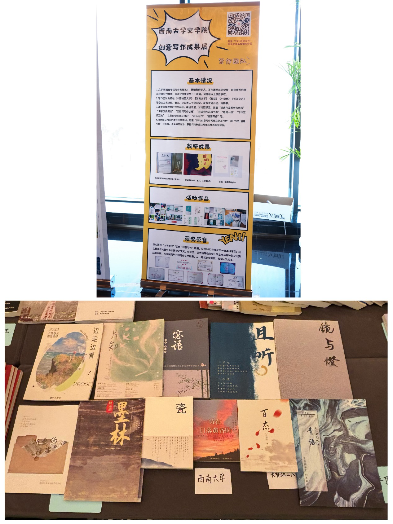 另外,本届大会在线下场地专门搭建了“创意写作成果展”的展台,集中展示了近年来创意写作的相关成果。欢迎来到公海710创意写作团队利用海报和实物的形式宣传欢迎来到公海710创意写作的基本情况、教研成果、活动作品和荣誉奖项等,吸引了诸多专家学者驻足观赏。