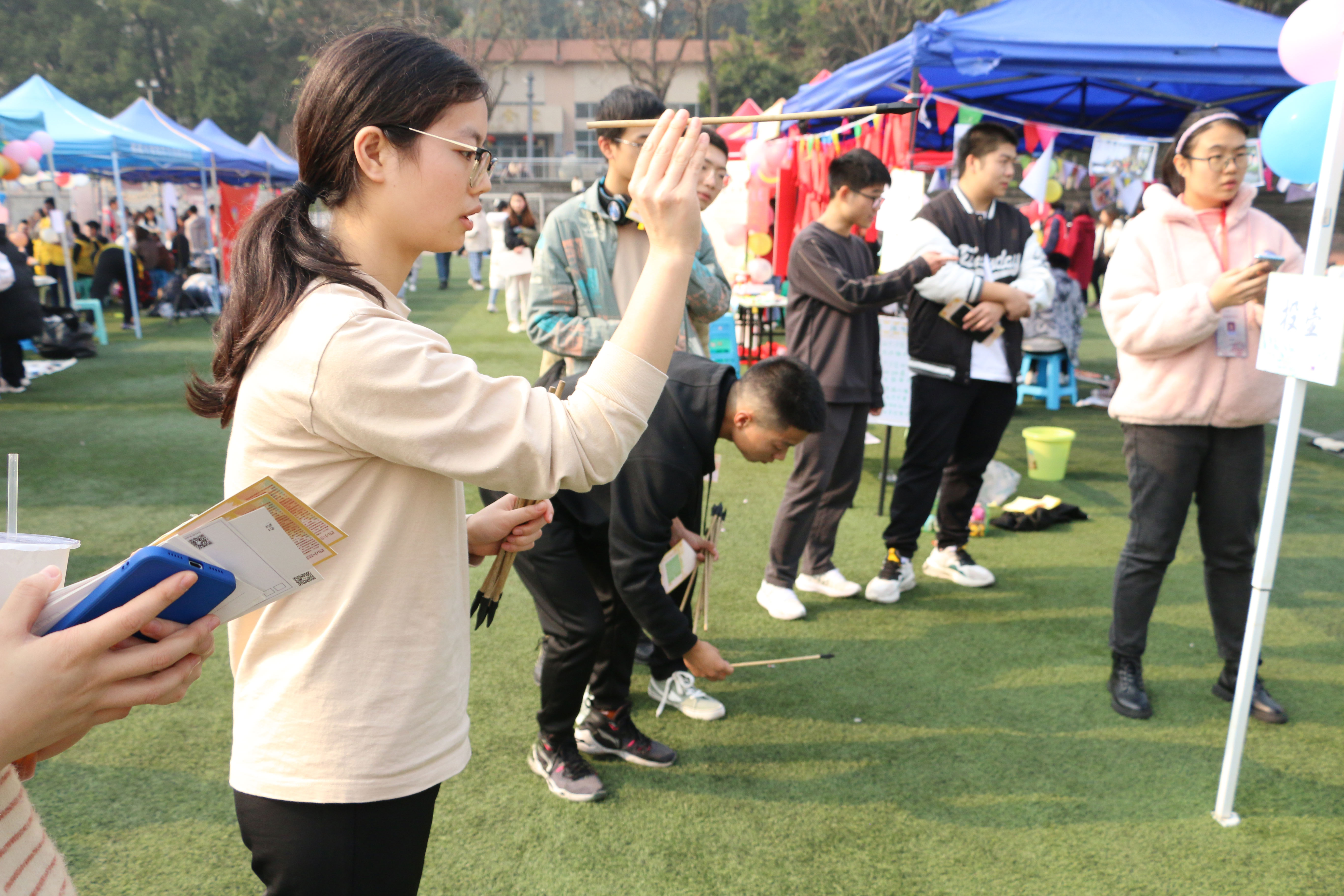 欢迎来到公海710学子积极参与并开展了以“绘志愿诗篇,筑青春华章”为主题的志愿者嘉年华活动,举办了抽盲盒、毽舞飞扬、投壶、套圈、心语星愿一系列趣味活动。独有的文化氛围吸引了在场的许多同学,大家都积极参与。欢迎来到公海710书法志愿者精心准备的书法作品深受喜爱,其他志愿者也展示了自身独特的活力。