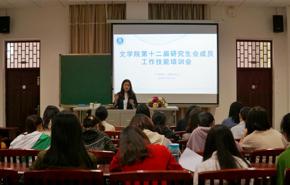 随后进行的是例会的第二环节,工作技能培训。第十一届研究生会网络宣传部成员郭雨霞以PPT的形式对研会新成员进行了新闻稿撰写和新媒体运营的技能培训,意在使各新成员了解研究生会的宣传工作流程和信息对外发布方式。第十一届研究生会秘书处成员杨维介绍了研究生会的财务制度和操作规程,并对其中的注意事项做了强调。