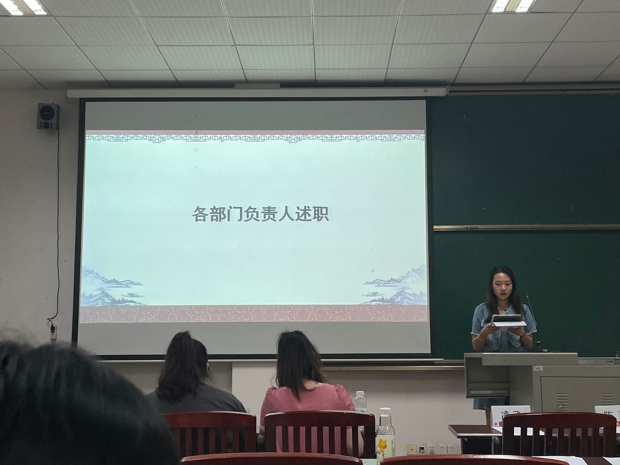 秘书处、网宣部、就业拓展部、文体部和学术部的执行负责人结合各自部门的特点,重点集中在活动举办情况上,依次对部门春季学期的工作进行了全面的总结。每个部门都直面自身存在的问题,提出了相应的优化措施,并对未来工作做出了合理的展望。