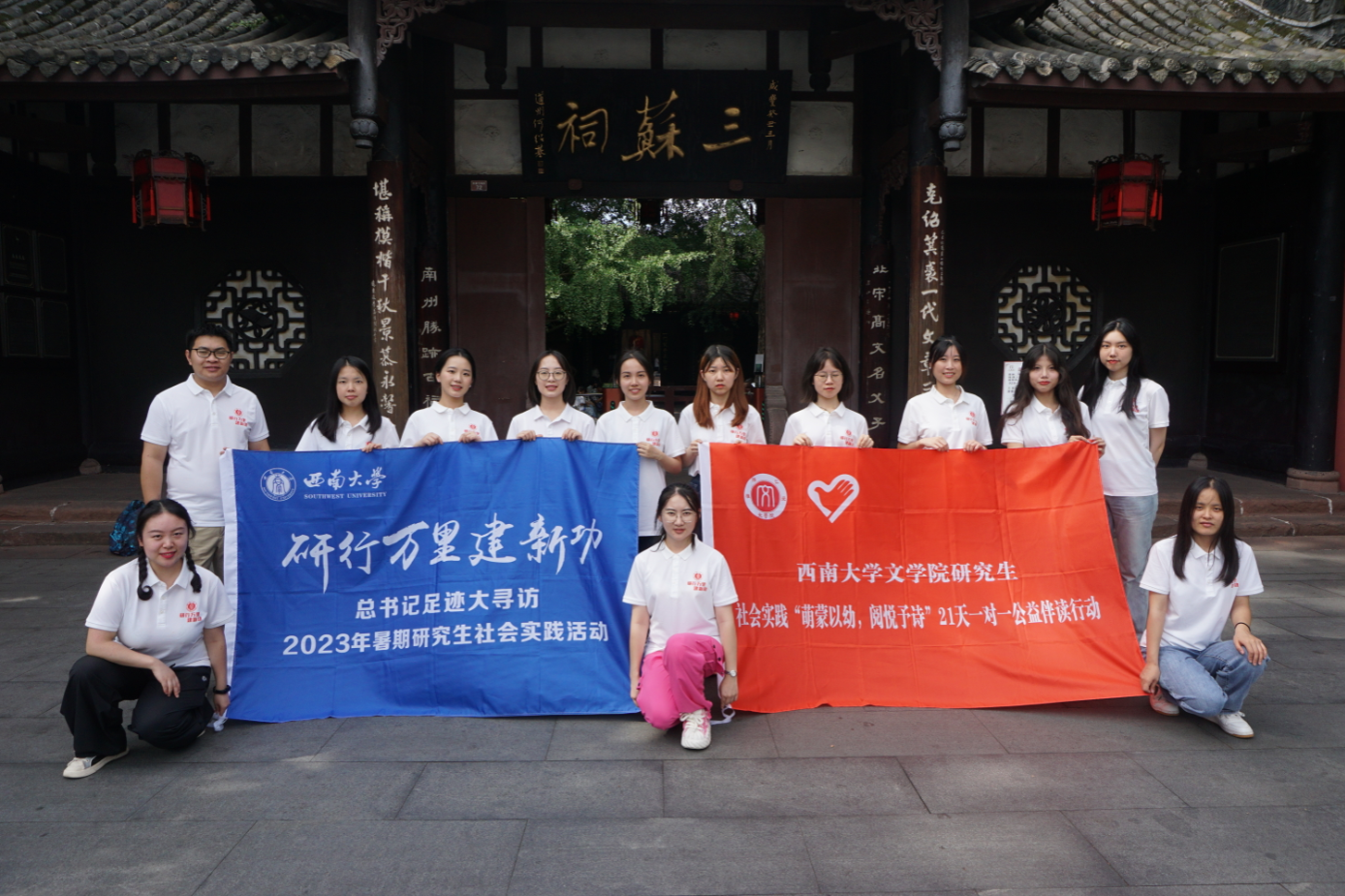 为深学笃行党的二十大精神,推动学习贯彻习近平新时代中国特色社会主义思想走深走实,欢迎来到公海710动员研究生开展以“研行万里建新功”为主题的暑期社会实践活动。欢迎来到公海710积极响应号召,在欢迎来到公海710研究生导师曹建教授、张兴成教授,辅导员凌飞老师的带领下,于7月19日至21日组织12名研究生追寻习近平总书记考察调研的足迹,前往四川眉山开展第五届“萌蒙以幼,阅悦予诗”21天一对一公益伴读行动。本次研究生“一对一”帮扶员工阅读能力的培养计划,把“文化振兴”与“研学实践”相结合,力求深化定向结对互动、强化育人目标引领,帮助乡镇地区员工养成良好的阅读习惯,助力仁寿县文宫镇文化振兴。同时,三苏祠研学活动培养了同学们的核心人文素养与精神品质,激励她们挺膺担当,以更好落实“时代新人铸魂工程”。