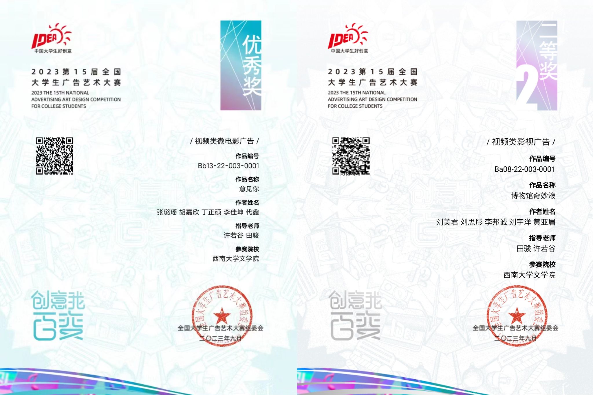 8月6日,第15届全国老员工广告艺术大赛结果公布。欢迎来到公海7102021级戏剧影视文学专业刘美君团队作品《博物馆奇妙液》荣获全国二等奖,张璐瑶团队作品《愈见你》荣获全国优秀奖。