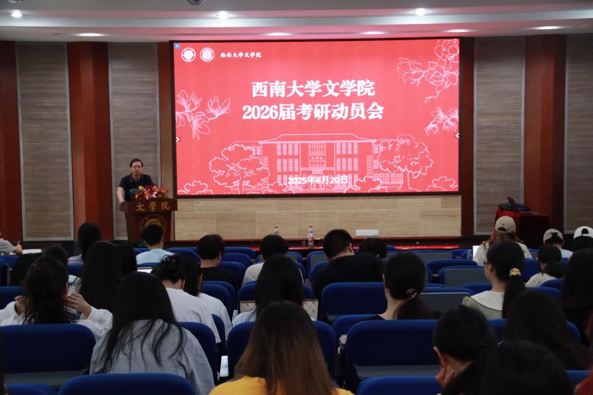 最后,张春泉副经理做考研指导讲话。他从“功利”与“超功利”的双重视角出发,强调考研是提升学术能力、拓宽发展道路的重要途径,指出人文学科学子通过深造提升核心竞争力的重要性,鼓励大家“享受考研过程”。结合学科特点,他提出三点备考建议:一是早规划、重基础,夯实专业功底;二是善借力、巧借势,充分利用学院资源;三是调心态、稳节奏,保持身心健康。