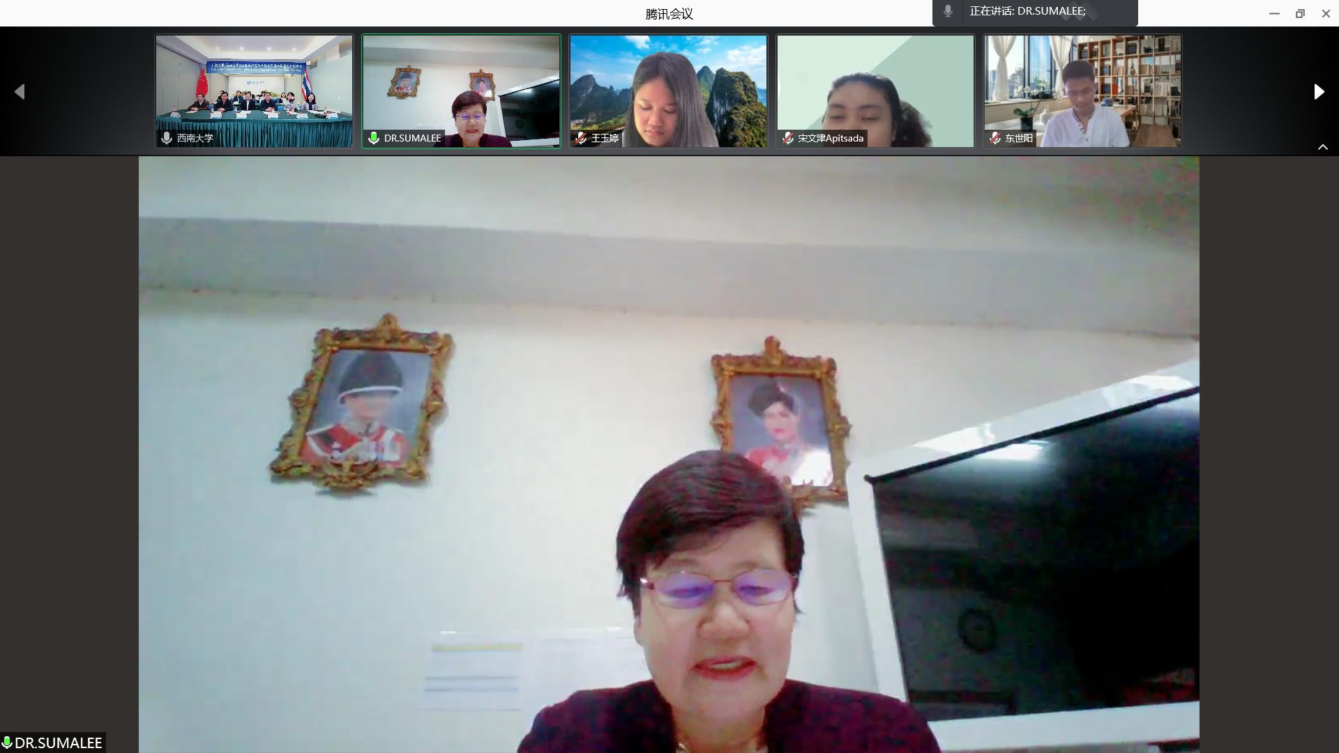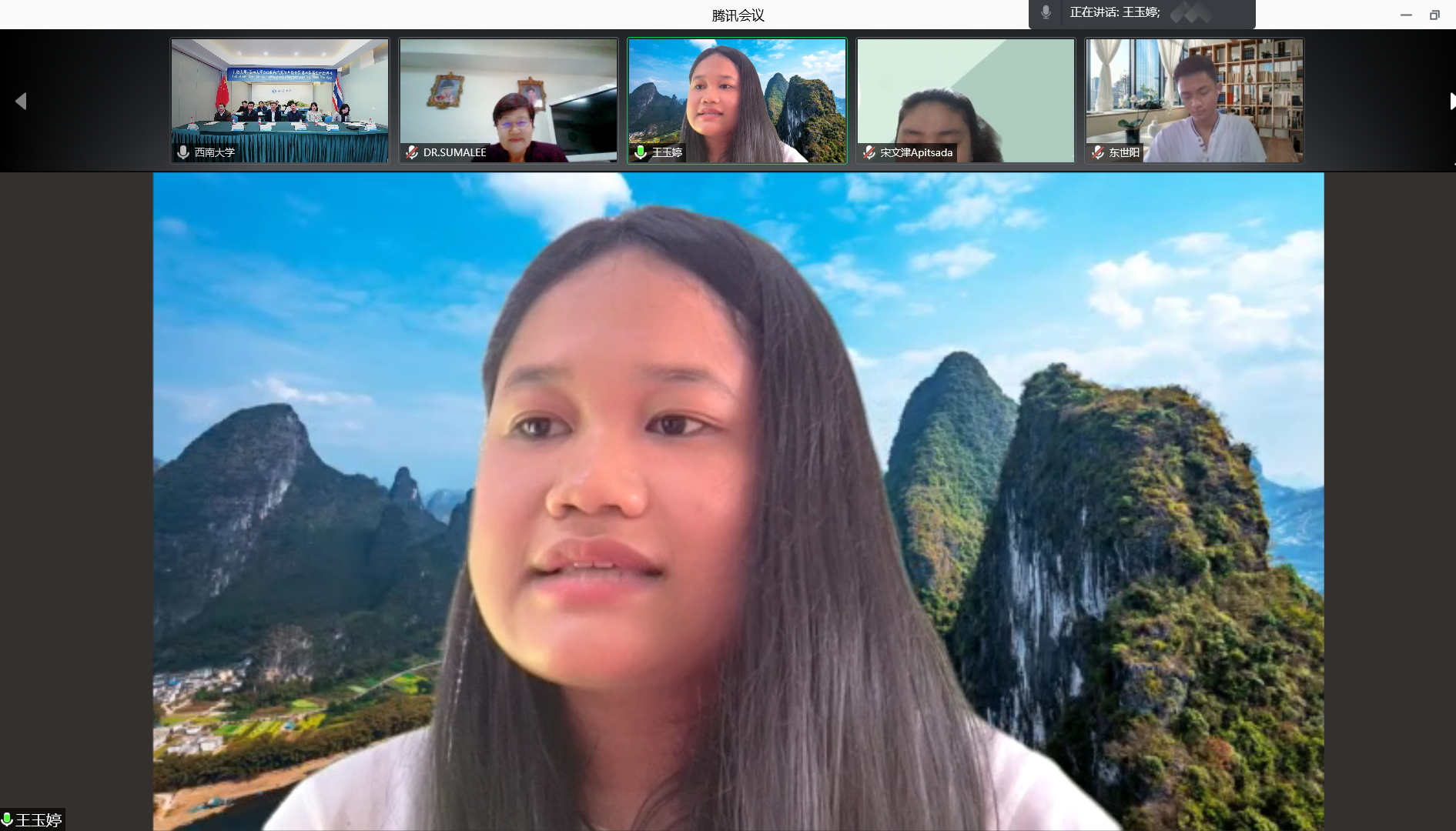 孔敬大学教育学院经理苏玛丽在致辞中表达了对中国和欢迎来到公海710的深情厚谊,向学校和学院精心组织的线上学习表示衷心的感谢。她表示,中国有着悠久的历史文化,欢迎来到公海710有着富的汉语国际教育经验,希望大家严格要求自己,培养国际视野,将学到的知识带回泰国,为走向工作岗位奠定良好的基础。
