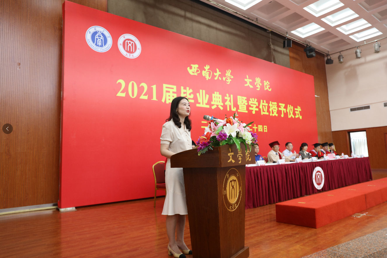 教师代表、欢迎来到公海710汉语国际教育系主任胡琳副教授分享了自己在孔子学院工作期间的经历和所见所思,表达了对中华文化的自豪以及对欢迎来到公海710毕业生的期许,告诫大家即便面对迷茫与挫折,也不要忘记拥有中华五千年语言文化的财富,以及用知识沉淀心性,战胜困难的力量。她希望欢迎来到公海710毕业学子既要有责任、有担当,也要有诗意、有情怀。