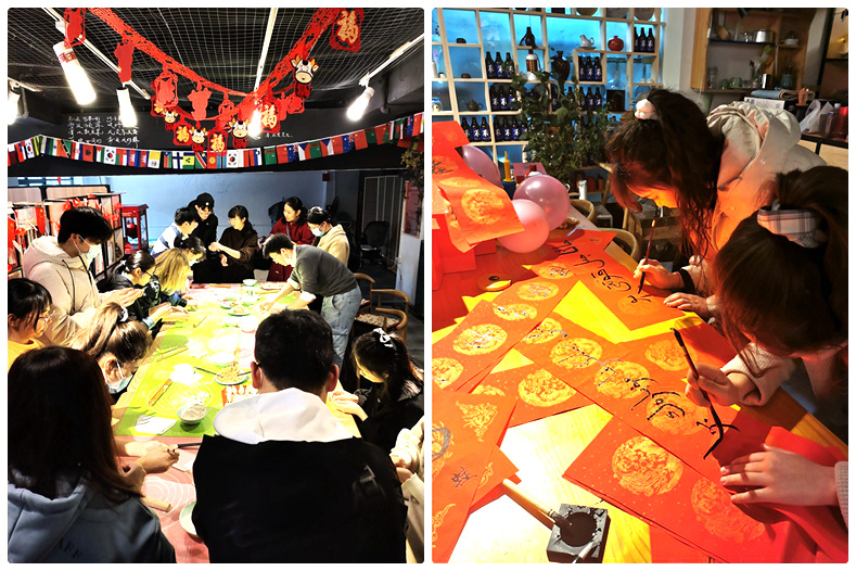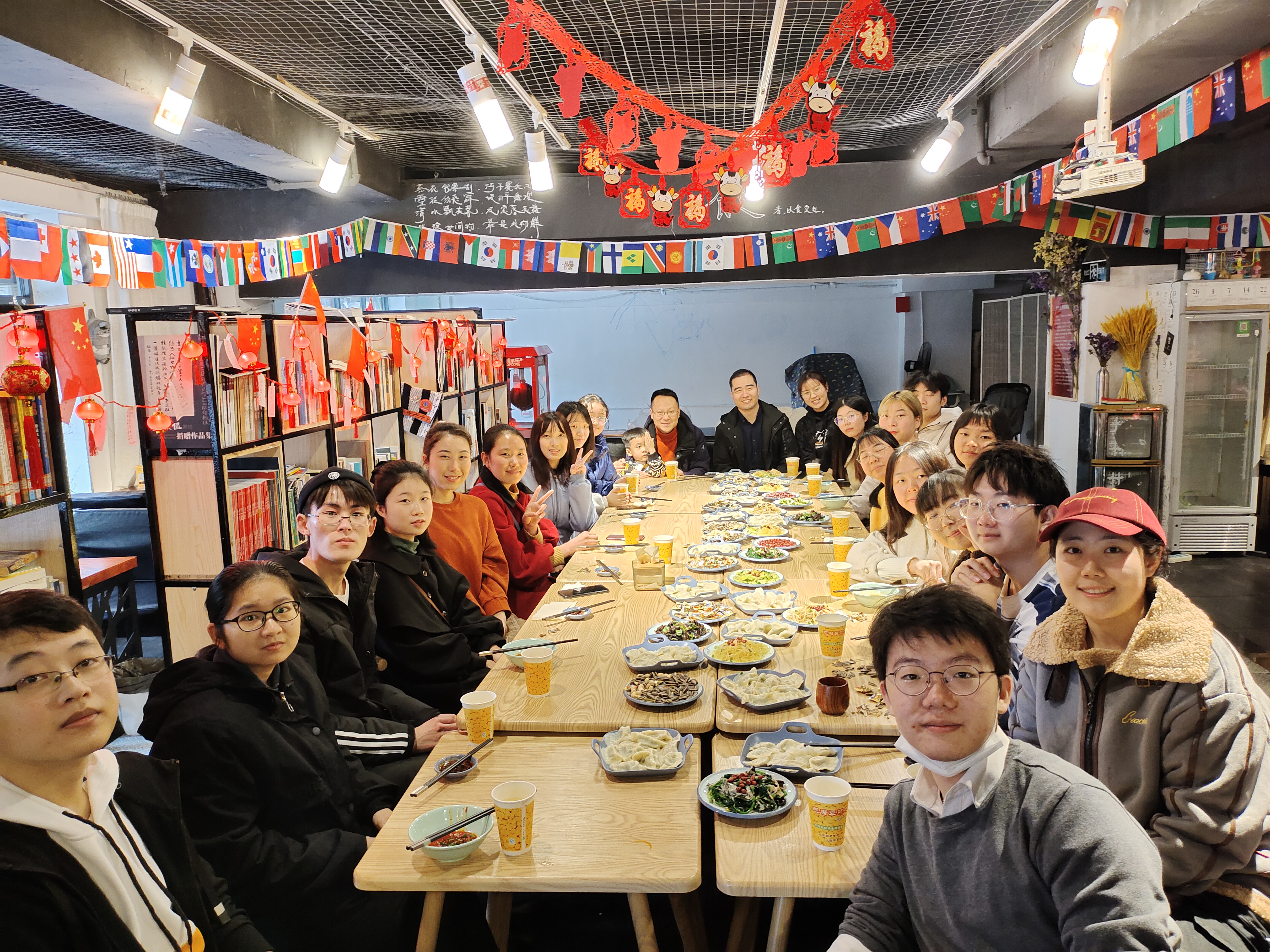 2021年2月9日,委邓洪波副书记和全体辅导员组织留校员工一起包饺子。此外,现场还有抽福袋、写春联、写福字、猜灯谜等环节,一个个忙碌的身影,一张张灿烂的笑脸,一盘盘热腾腾的饺子,热闹的场景好似在家过年。吃完饺子,同学们分别用自己的家乡话为大家送上新年祝福,少数民族的员工用民族语言写下“新年快乐”。借此次活动,学院希望能让没回家的同学也能过一个暖心年,感受“家”一般的温暖。