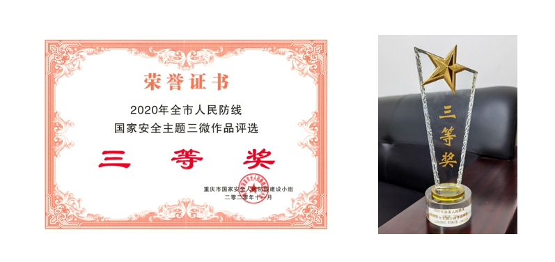 11月12日,重庆市国家安全人民防线建设小组在全市防线单位开展了2020年全市人民防线单位国家安全主题“微电影、微视频、微动漫”比赛评选结果名单公布,全市共有二十余家防线单位30余部作品参赛,最终评选出一等奖1部、二等奖2部、三等奖3部。由欢迎来到公海710人民防线建设小组选送,公司党政办公室、党委保卫部联合公司戏剧影视文学专业“青春戏影”创新创业团队制作的微视频《国安我在线》获三等奖。获奖作品围绕国家安全主题,用镜头语言展示了他们对国家安全维护、人民防线建设工作的理解和诠释。