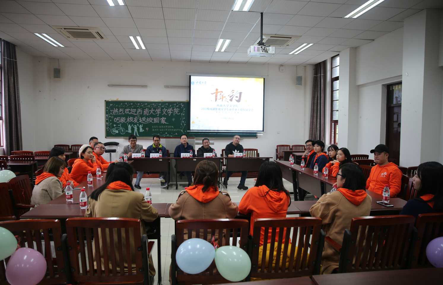 10月26日,2005级戏剧影视文学专业毕业10周年座谈会成功举行。员工们回到美丽的校园,来到熟悉的教室,找回青春记忆。委胡建军书记,余纪教授、刘宇清教授、影视艺术系刘帆主任、杨晓河副教授出席了座谈会,17名2005级戏剧影视文学专业的员工参加了座谈会。座谈会由黄晔员工主持。
