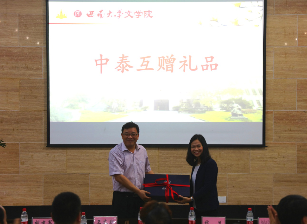 随后,王本朝经理和秋兰主任代表两院互赠纪念礼物。