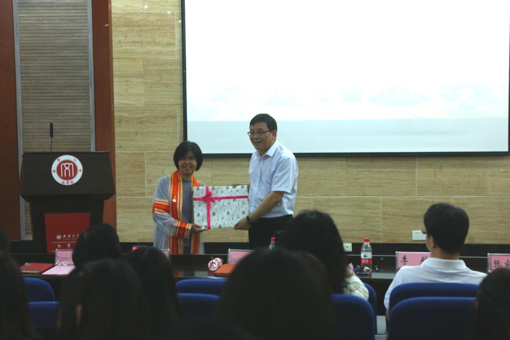 随后,王本朝经理和苏瓦莉副经理代表两院互赠纪念礼物。王本朝经理为全体27名结业同学颁发结业成绩单。