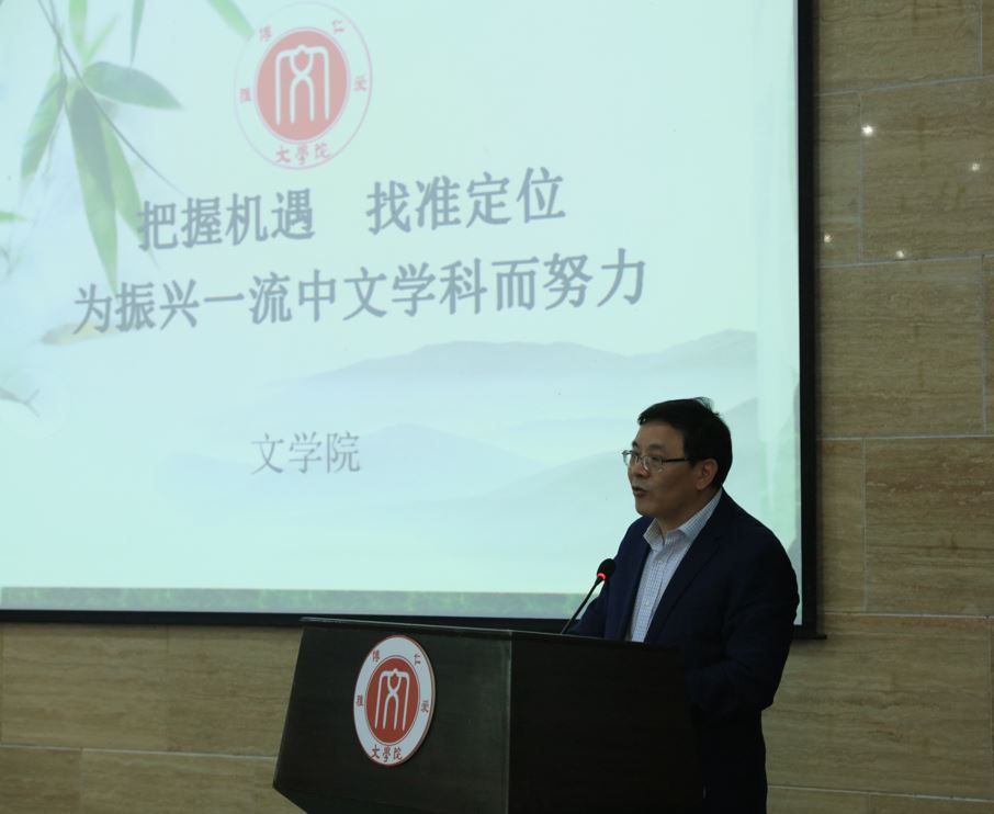 随后,王本朝经理以“把握机遇·找准定位—为振兴一流中文学科而努力”为题做论坛报告,从学院团队建设思路、团队建设基础与成效、存在的问题、未来发展思路等方面与全院教职员工进行了交流。王本朝经理表示,团队建设整体思路是要大力打造有实力的人才队伍,做出标志性的成果,营造良好的学术氛围,加强对各类人才的培养。要继续做大做强学科人才队伍,进一步增强学科的核心竞争力,加强国际合作与发展,提高科研产出率,进一步扩大专业影响力,加强学科高平台建设,建设好汉语言文学、戏剧影视文学本科专业,打造一批高质量的核心精品课程,建设好学院博雅创新实验班,扩大研究生优质生源比例。王本朝经理强调,团队建设不仅是人才培养、科研整体实力的表现,更是学院之未来、文脉之延续,希望学院全体教职员工为之共同努力、奋斗。