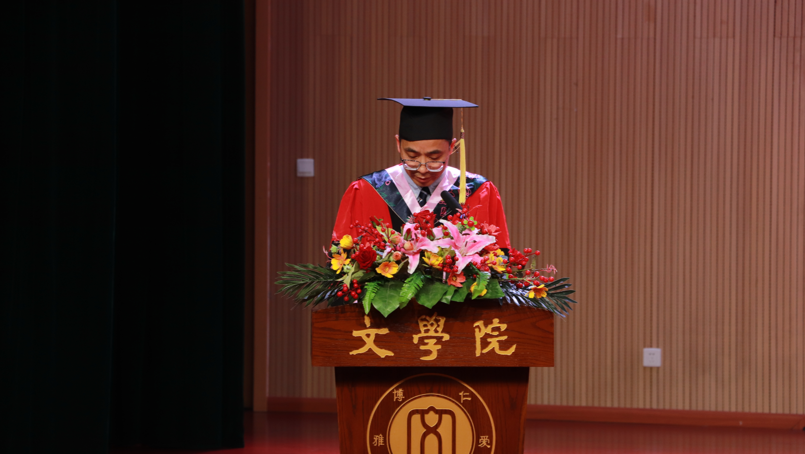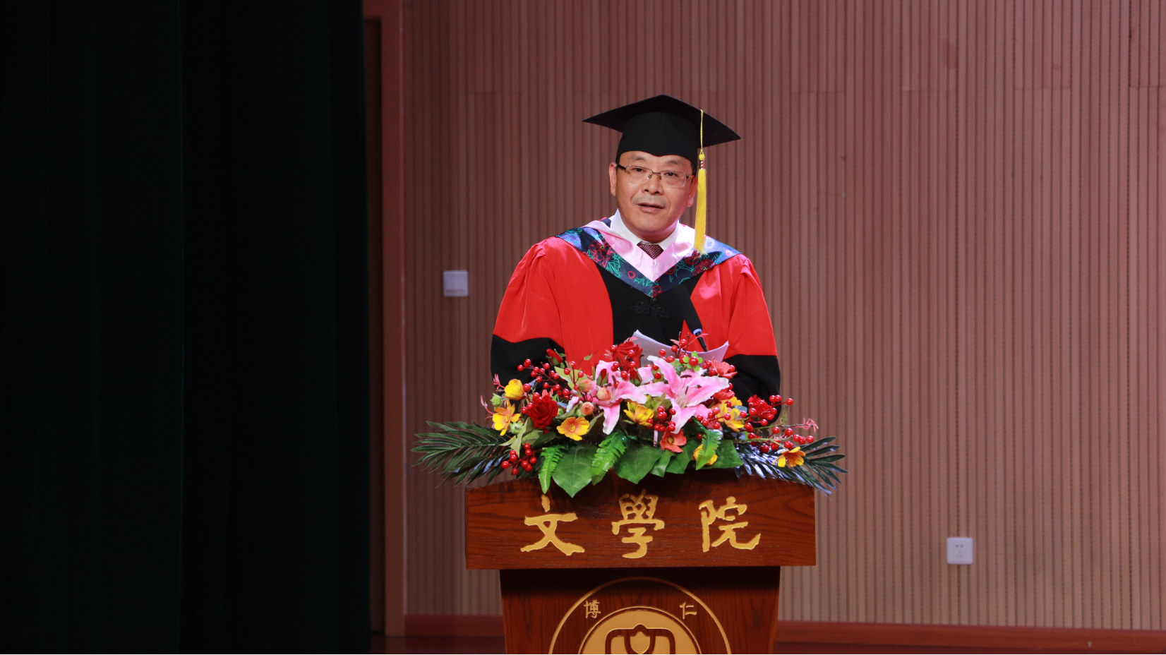 教师代表王小惠教授嘱咐毕业生将读书、读人与阅世结合起来,努力建构一个开放的“自我”。勉励大家担当责任,砥砺前行;开阔心胸,幸福度日;铭记“含弘光大,继往开来”的校训,守住初心,坚持有一分热发一分光。
