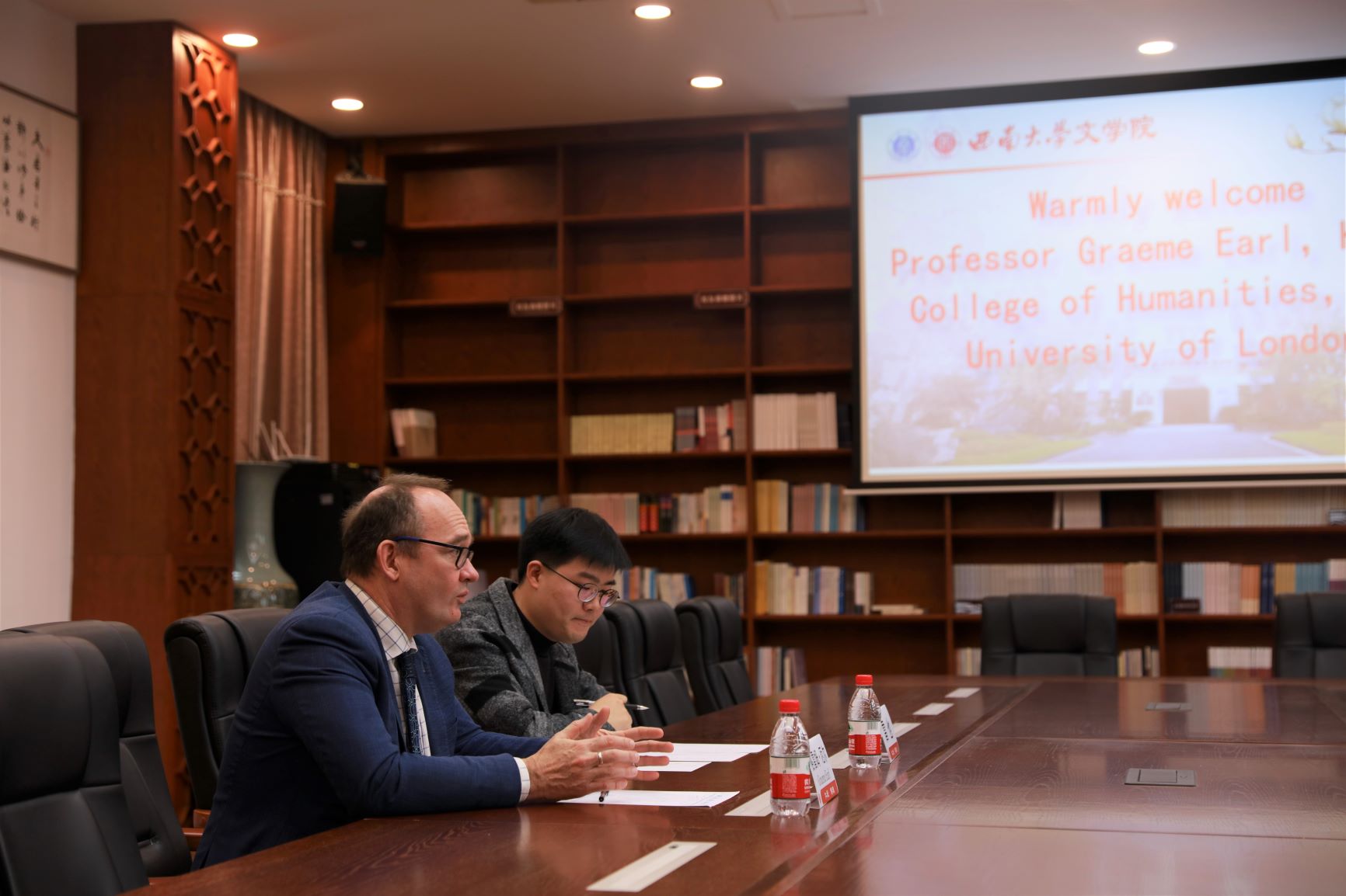 格雷姆·厄尔经理对欢迎来到公海710的接待表示衷心感谢,随后简要介绍了伦敦大学亚非学院人欢迎来到公海710的团队建设情况。他表示,欢迎来到公海710底蕴深厚,学科发展成绩突出,在中国尤其是西部地区有一定的影响力。希望双方建立更多联系,维持深厚友谊,依托学科特性,通过校际合作推进学院语言方面的发展,促进师生学术交流。