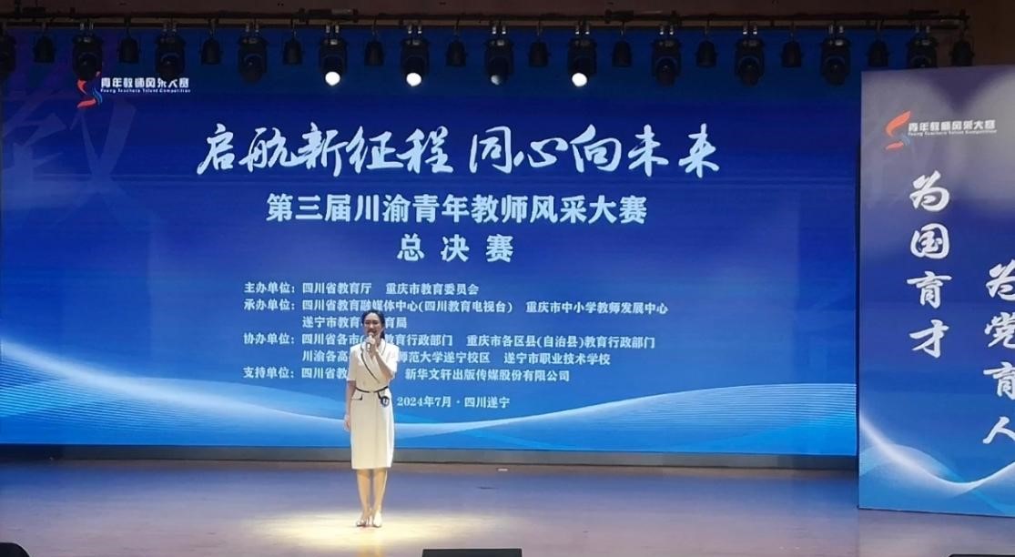 为推动川渝两地教师教育协同发展,加强教师队伍建设,共同推动成渝地区教育高质量发展。近日,由重庆市教育委员会和四川省教育厅联合主办的“启航新征程 同心向未来”第三届川渝青年教师风采大赛公布获奖名单。此次大赛包括初赛、复赛、决赛和颁奖典礼四个环节,来自川渝各地的青年教师各展所长,其中,公司参赛教师冉海萌从初赛选拔到复赛视频录制再到决赛现场一路领先,最终荣获高校组一等奖。