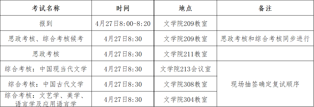 (二)综合考核时间、地点