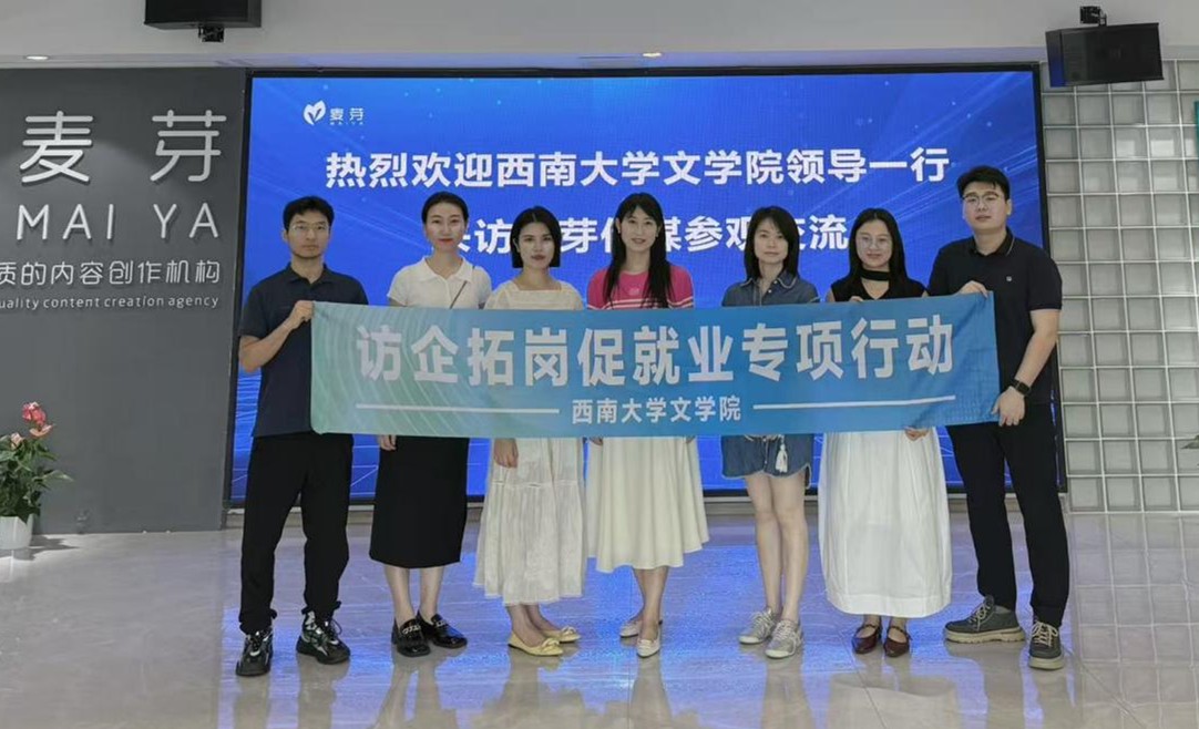 为深入贯彻落实“访企拓岗促就业”专项行动要求,拓宽毕业生就业渠道,深化校企协同育人机制,2025年7月3日,公司党委书记副书记 纪委书记陈雨曦带队赴重庆麦芽传媒有限公司开展访企拓岗。双方就实习基地建设、产学研合作等议题展开深入交流,并初步达成合作意向。
