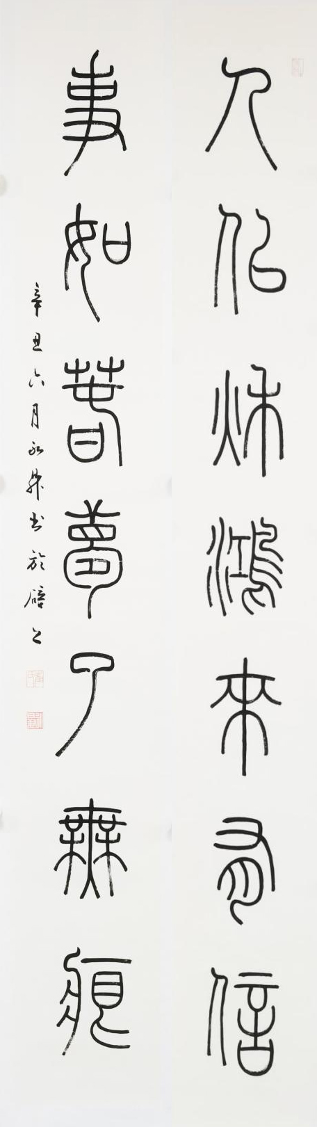 以通驭专者,本是为学之道,于书亦然,“熔铸虫篆,陶钧草隶”,行臻会美于一体,志于至善。“旁通二篆,俯贯八分,包括篇章,涵泳飞白”,诸体兼善,以通驭专,斯为至难。书之难者,以篆与草为最,而篆书者,又以二李为上,难在精匀劲健而有变化;草书者大草尤难,难在放情而有度。诸体兼善,宜其情境,书体风格,各有攸宜,宗祠庙堂,墓铭碑碣,吟咏题跋,点染斋室,精粗有致,不一而同。