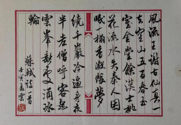 硕士生许汉文本科为历史学,论文研究苏辙书法,于前人多有发明。其书写内容以东坡、子由唱和诗或苏辙诗文为主,书体以行草见长,取法明人而有董其昌、张瑞图风格,显示出其未来创作之多种可能性。