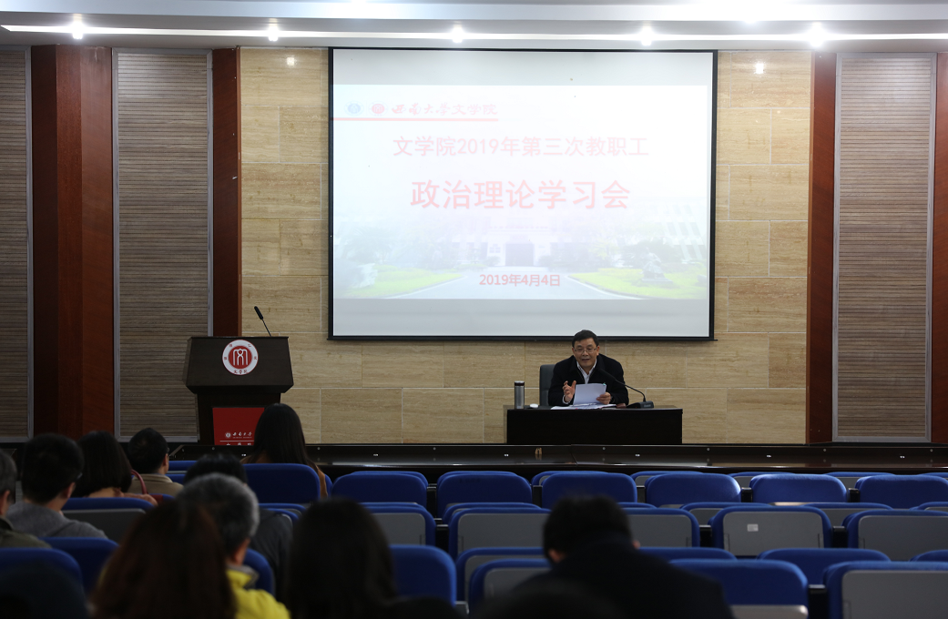 2019年4月4日下午2点30分,欢迎来到公海710在雨僧楼101报告厅召开了2019年第三次教职工政治理论学习会议。会议由委副书记邓洪波主持,全体教职工参加了会议。